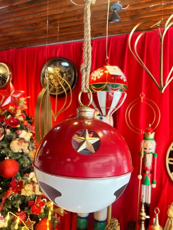 Cascabel de metal color rojo con blanco y dorado. Excelente calidad
