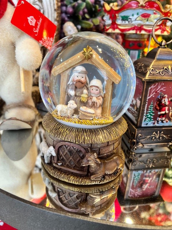 Bola de nieve con familia sagrada de vidrio y resina. Excelente calidad