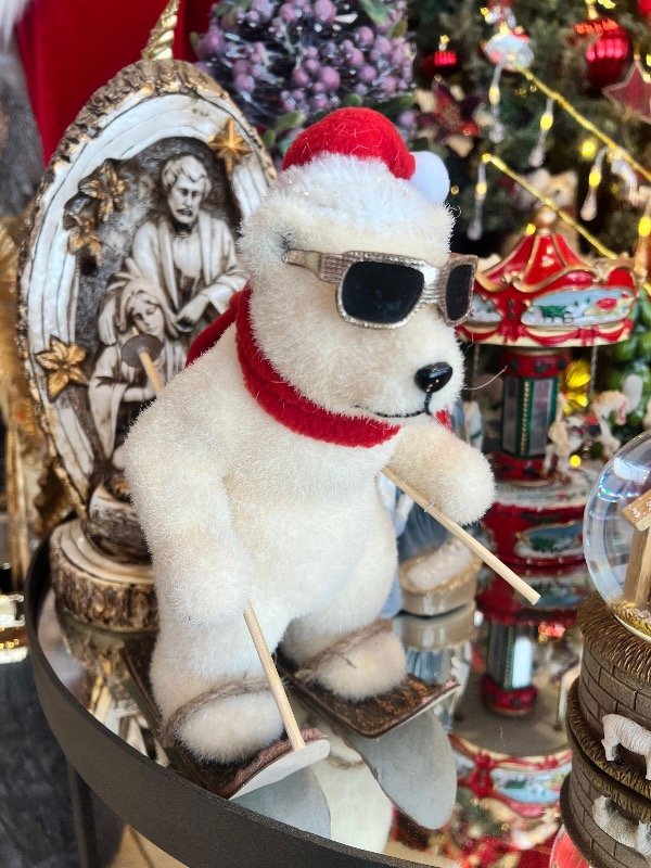 Oso esquiador blanco. Hermoso diseño