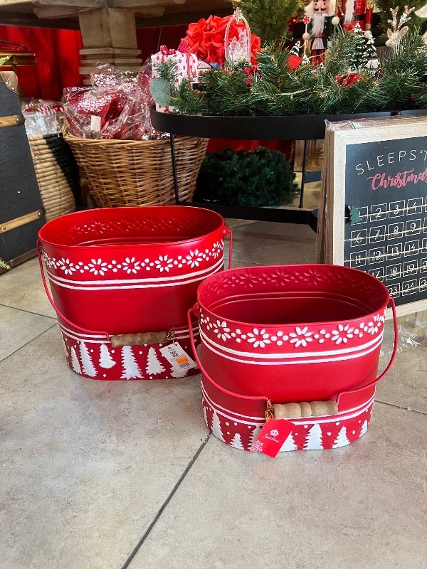Set x2 baldes de metal, color rojo con blanco. Excelente calidad