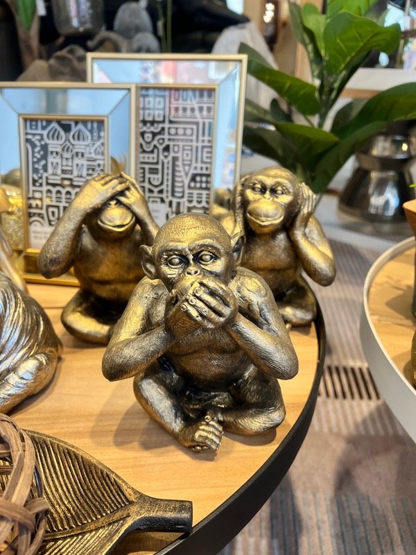 Monos sabios de recina color dorado viejo. Excelente calidad